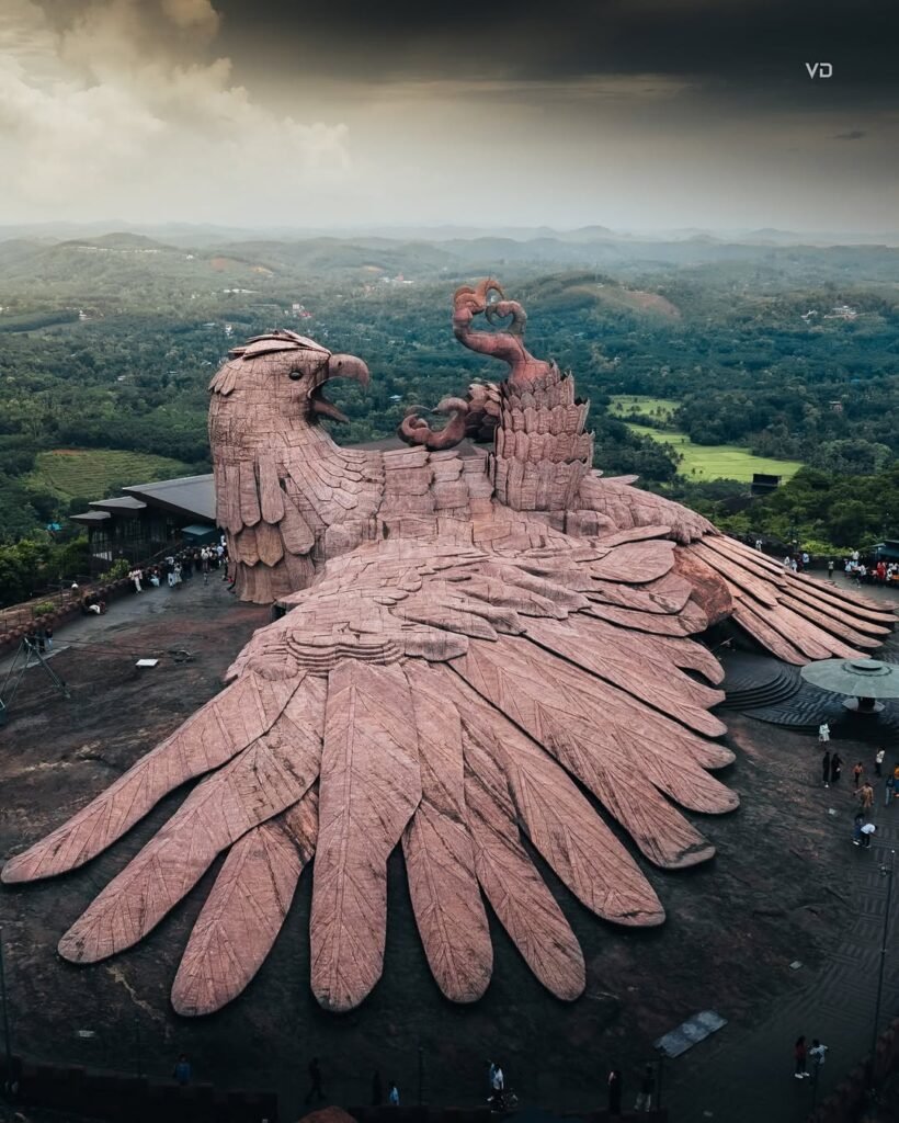 Built atop Jatayupara (Jatayu Rock), this sculpture is not only a tribute to the legend but also an architectural marvel. Inside the sculpture, visitors can explore an immersive 12D theater, museum, and digital storytelling experience describing Jatayu’s heroic journey.