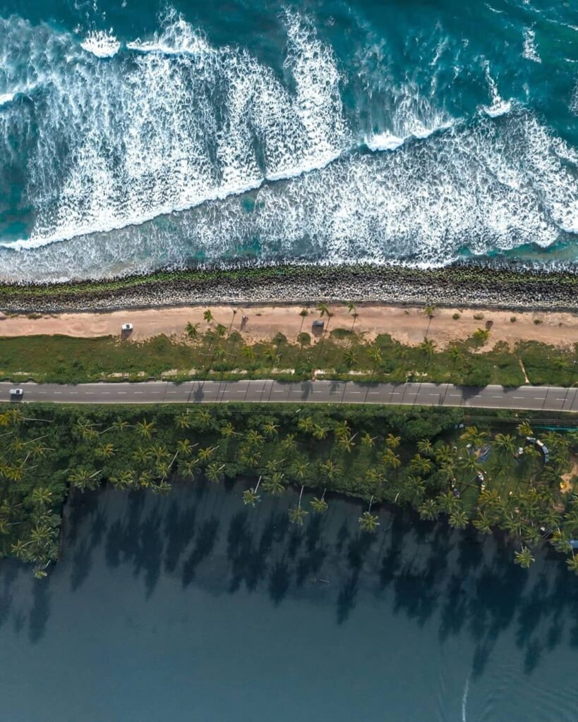 Kappil Beach, located just a few kilometers from Varkala in Kerala, is a stunning stretch of golden sand where the tranquil Edava–Narayanapuram backwaters run parallel to the roaring Arabian Sea. This rare and breathtaking landscape makes Kappil one of Kerala’s most scenic and peaceful coastal destinations.
