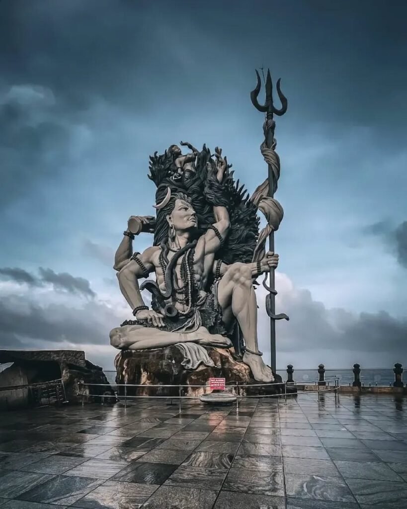 Aazhimala Shiva Temple, located near Vizhinjam in Thiruvananthapuram, is one of Kerala’s most serene and visually stunning temples. Perched on a rocky cliff overlooking the Arabian Sea, this temple is famous for its breathtaking location and the majestic 52-feet tall Shiva statue, sculpted in a dynamic “Gangadhar” posture. The waves crashing against the rocks and the cool sea breeze create a truly divine atmosphere, making it a favorite spot for devotees and travelers alike.